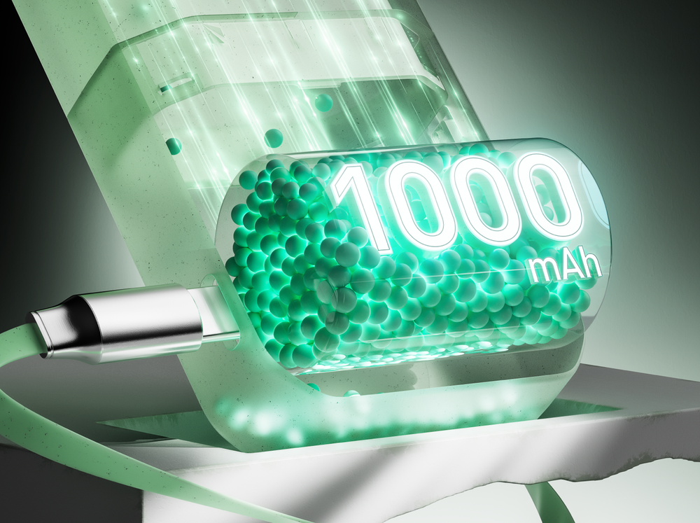 1000mAh rechargeable battery supports you in all-day vaping enjoyment. Charge up shorter, vape longer!