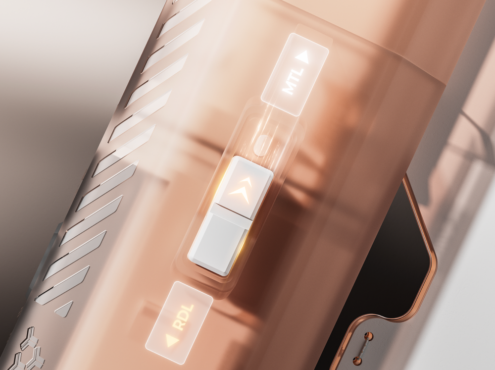 Two different vaping experience can be achieved by adjusting the slider: choose a straighter or more restricted airway to effortlessly switch between MTL and RDL modes.